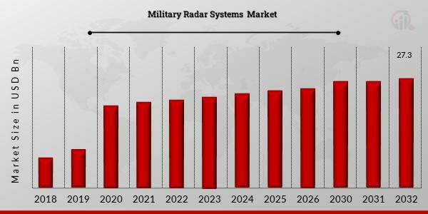 최신 MRFR(Market Research Future) 분석에 따르면 글로벌 군용 레이더 시스템 시장은 2024년부터 2032년까지 예측 기간 동안 연평균 성장률(CAGR) 7.20%로 성장하여 2032년까지 273억 달러의 가치에 도달하여 크게 급증할 것으로 예상됩니다. 이러한 성장은 진화하는 보안 위협, 레이더 기술의 발전, 선진국과 개발도상국 모두에서 감시, 표적 추적 및 미사일 유도 시스템에 대한 필요성 증가에 의해 주도됩니다.